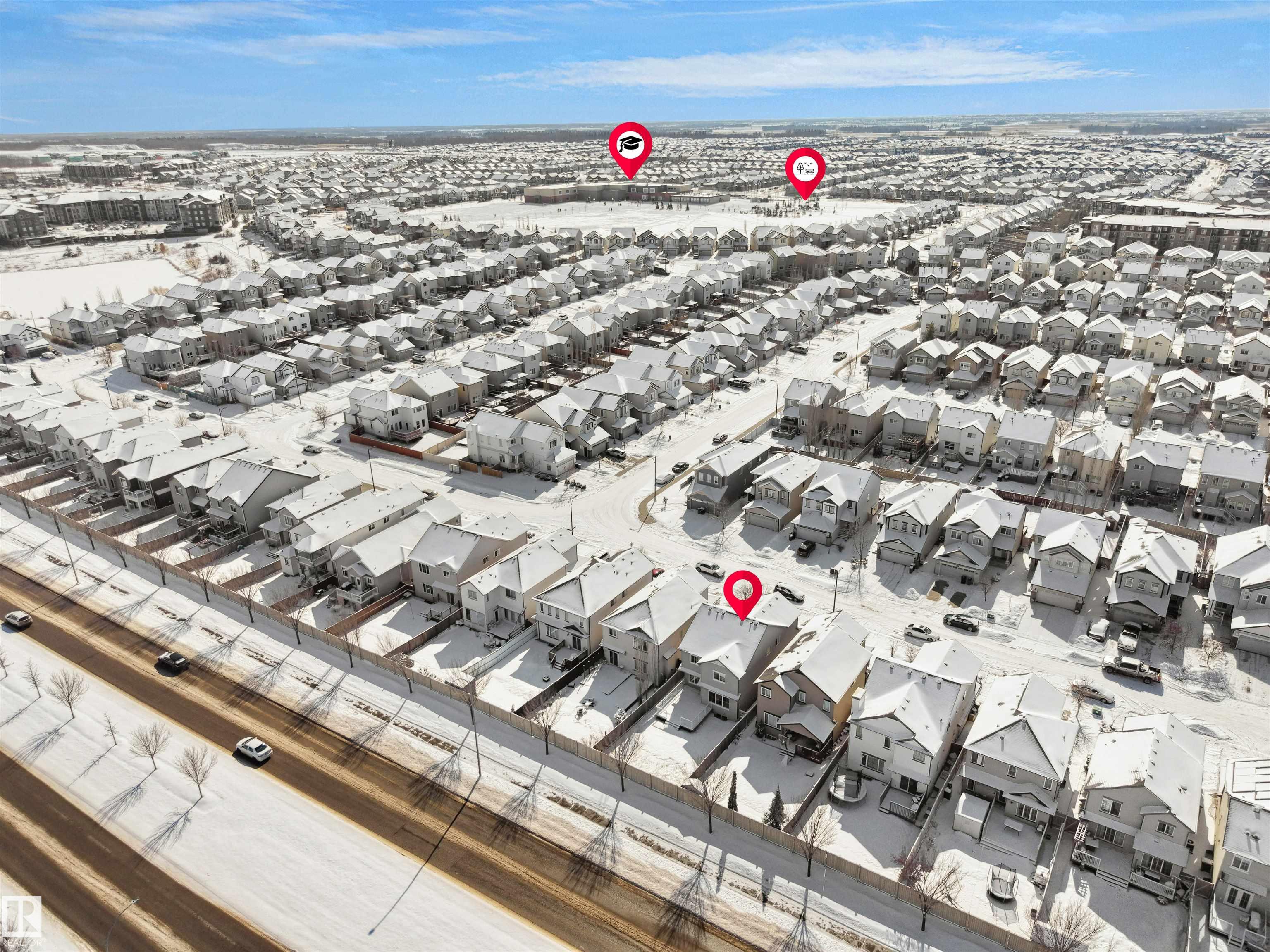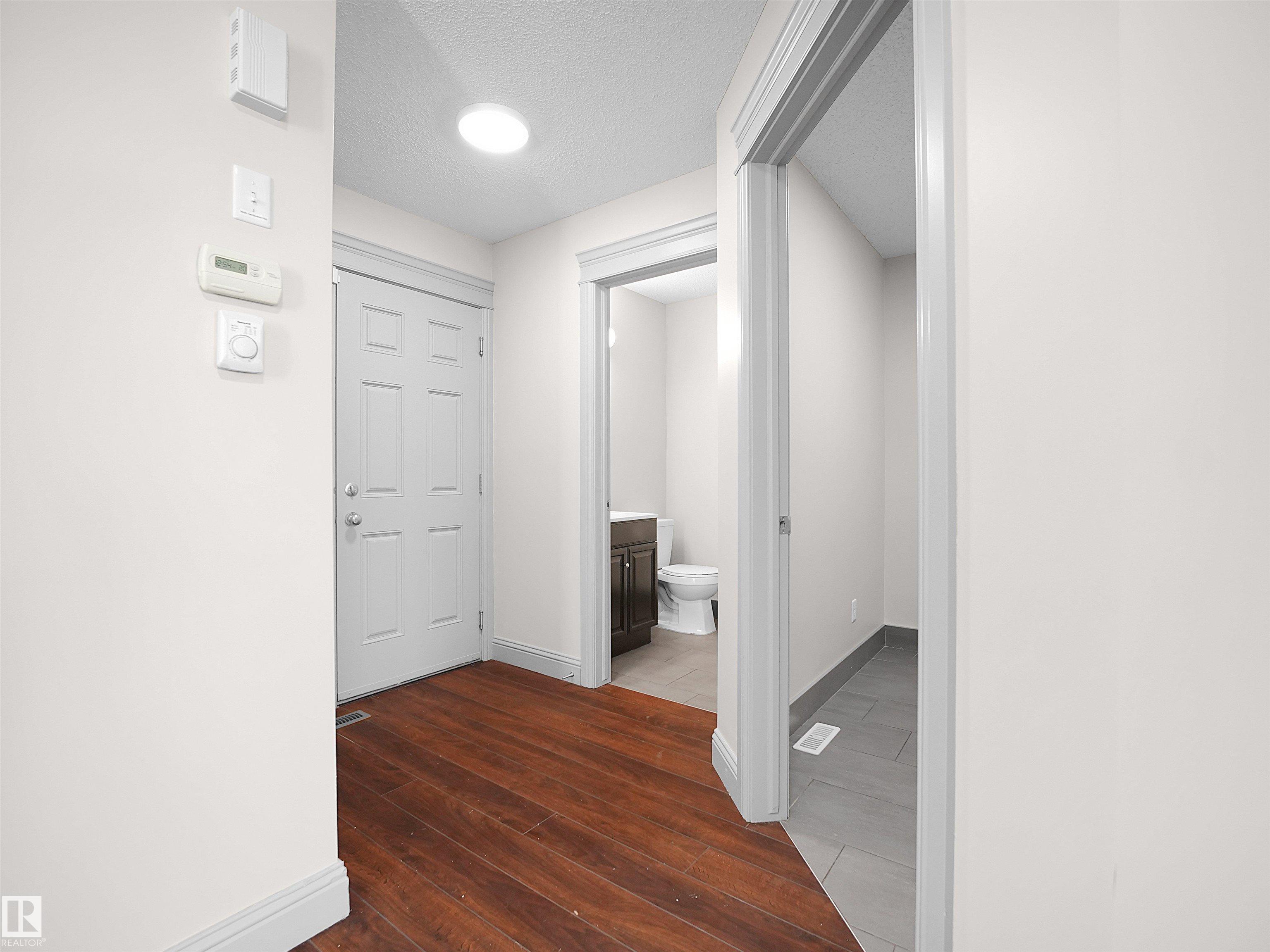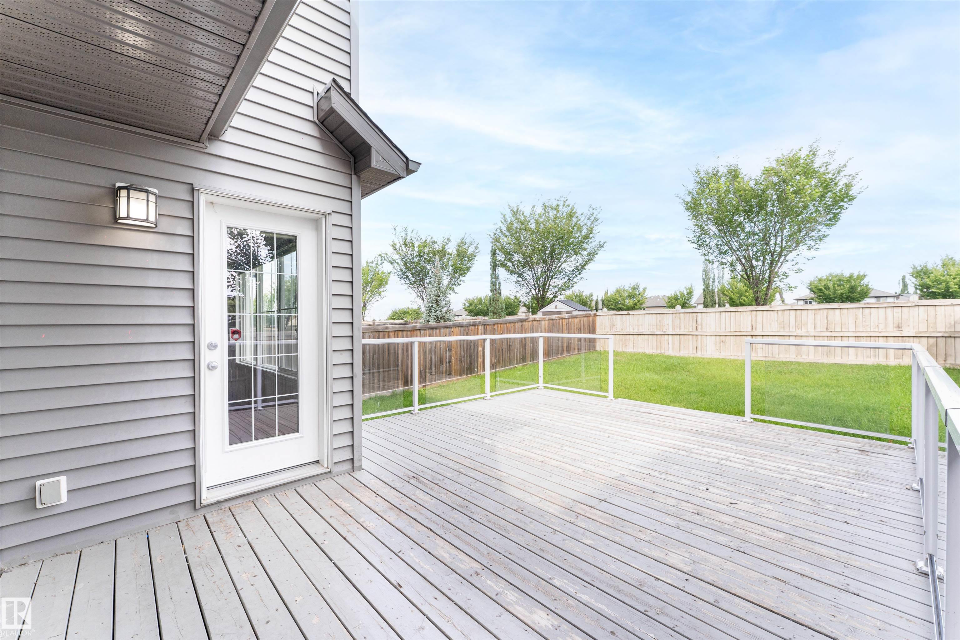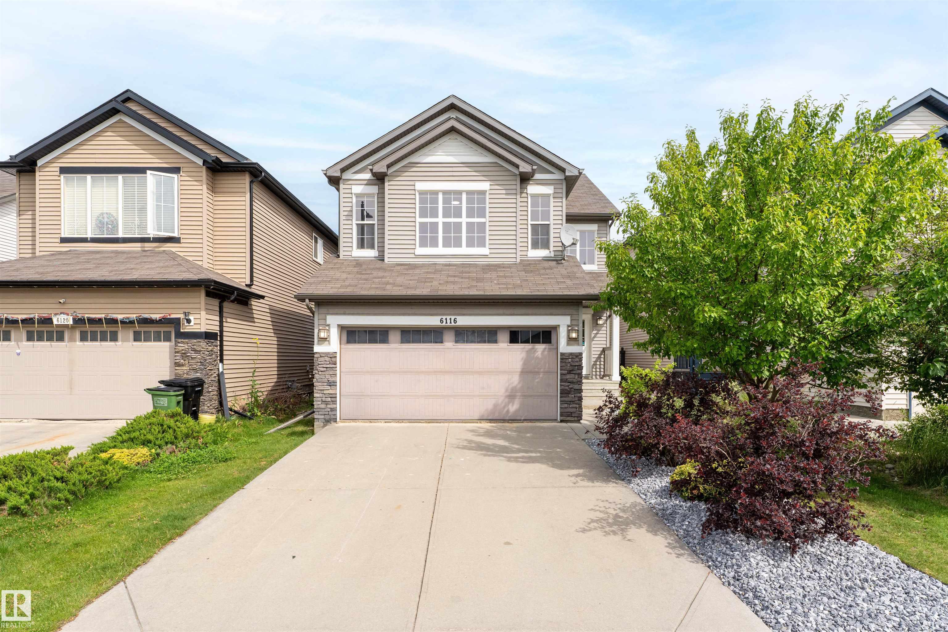 Welcome to this beautifully maintained home in the sought-after community of Walker! Featuring a grand open-to-below entry, the main floor offers a bright open-concept layout with a spacious living area, a well-appointed kitchen with a large island and pantry, and a dedicated dining space. A versatile main floor flex/prayer room adds functionality and can be converted back to a laundry area as per the original layout. Upstairs features a generous bonus room, 3 spacious bedrooms, and a full bath. The primary suite includes a walk-in closet and private ensuite. This home is freshly painted, has brand new carpet, and comes with central air conditioning for added comfort. Enjoy a fully landscaped backyard with a large deck and glass railing, perfect for outdoor living. Conveniently located near schools, shopping, parks, transit, and with easy access to Ellerslie Road and Anthony Henday Drive.